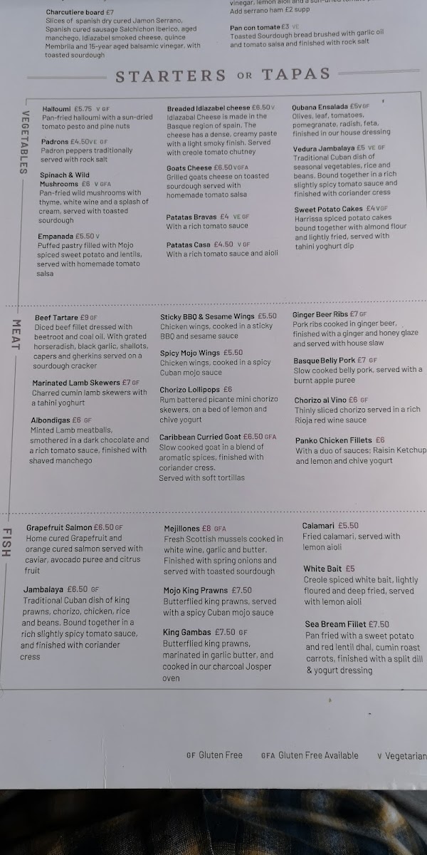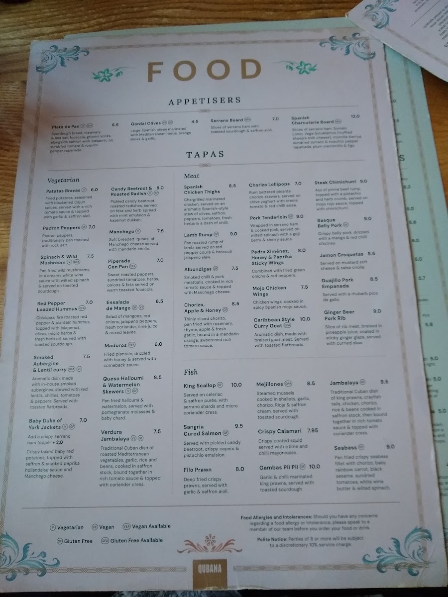 What makes the Qubana Menu stand out is its creative Spanish-Cuban fusion, with a strong emphasis on tapas and chargrilled meats. Diners can start with classic patatas bravas or venture into more adventurous territory with morcilla croquettes and chorizo in cider. The Iberian pork and Cuban-inspired steaks from the Josper grill are a highlight-perfectly cooked with a smoky depth that elevates the entire dish.