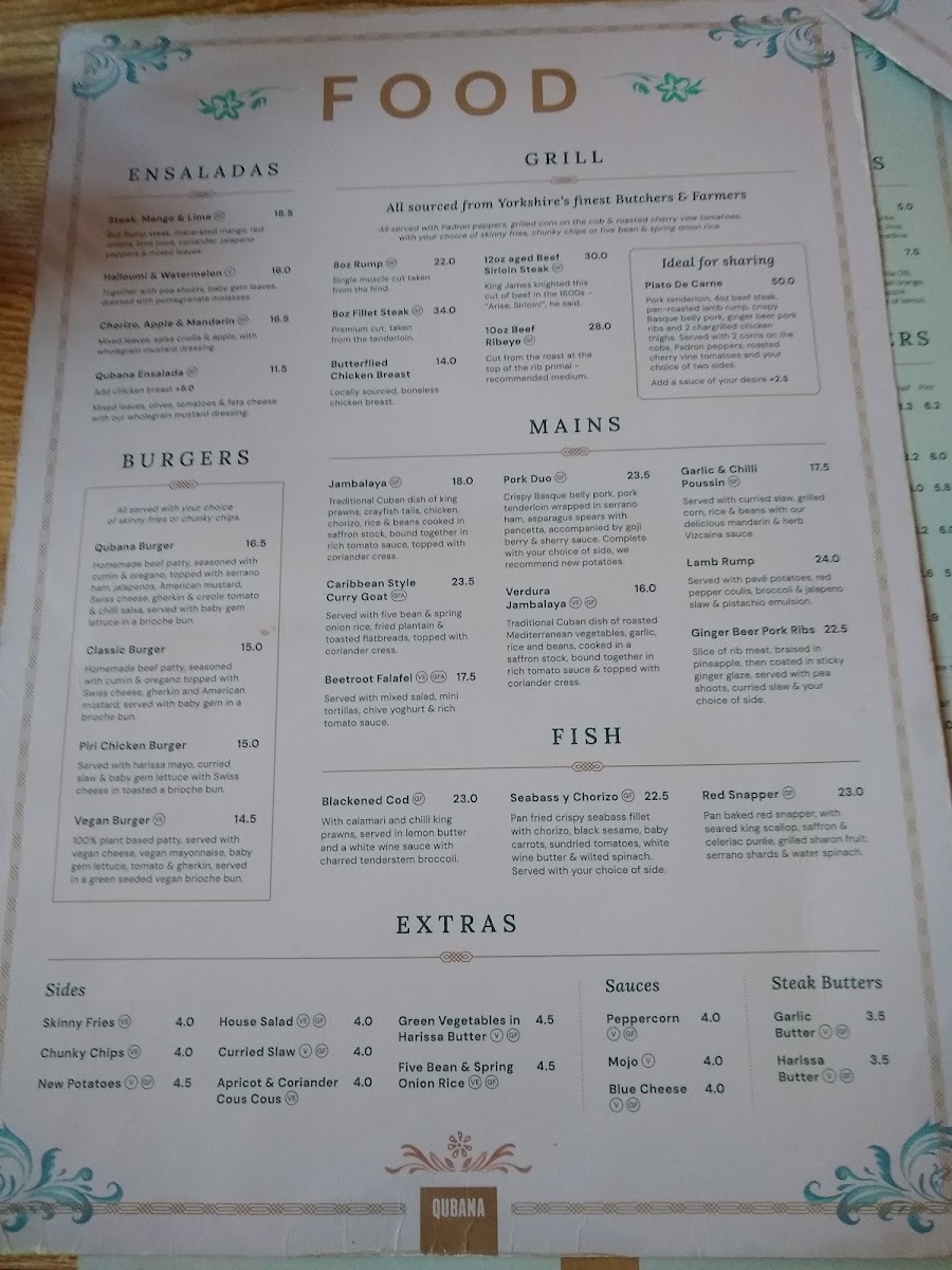 The Qubana Menu at 1-3 Wood St, Wakefield WF1 2EL, is a bold expression of Latin flair fused with Yorkshire charm. Set in a beautifully restored former post office building, Qubana offers a distinct dining experience that effortlessly bridges tradition and innovation. From the moment you walk in, the ambiance-rich in textures, warm lighting, and an open mezzanine-sets the stage for a memorable meal.